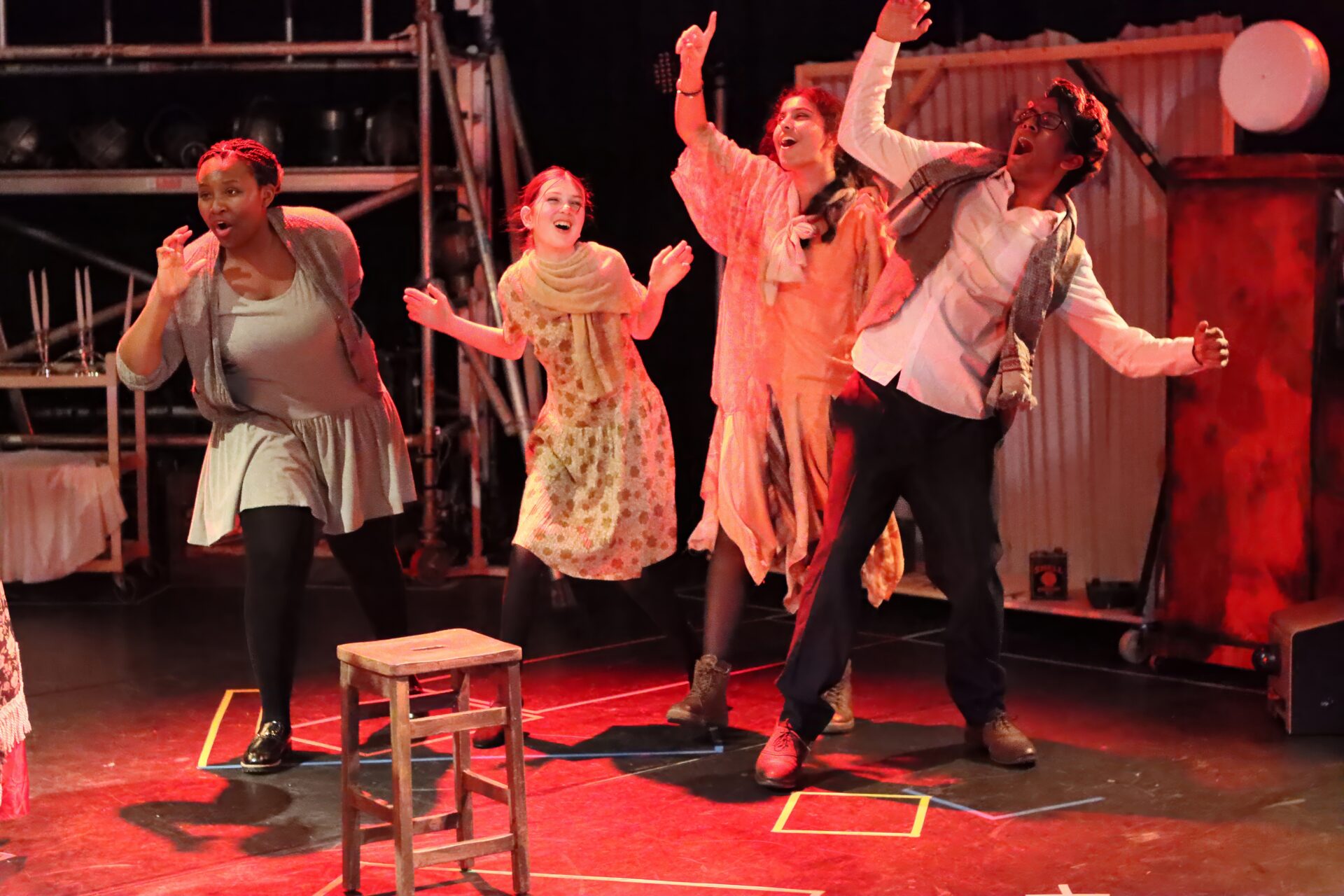 From the first read-through, it was clear how ambitious this undertaking was going to be, but we also saw how marvellous it might be if we could pull it off. We started rehearsals by picking apart the show into its individual components, with actors rehearsing intense scenes of dialogue, while the dancers were busy choreographing and rehearsing – sometimes in the same rehearsal. As the show dates drew closer, the magnitude of the task at hand started to seem daunting, and it seemed difficult to conceive how all these moving parts could possibly slot together. However, the most memorable experience was the moment that everything came together, and everyone could finally see the vision before them.